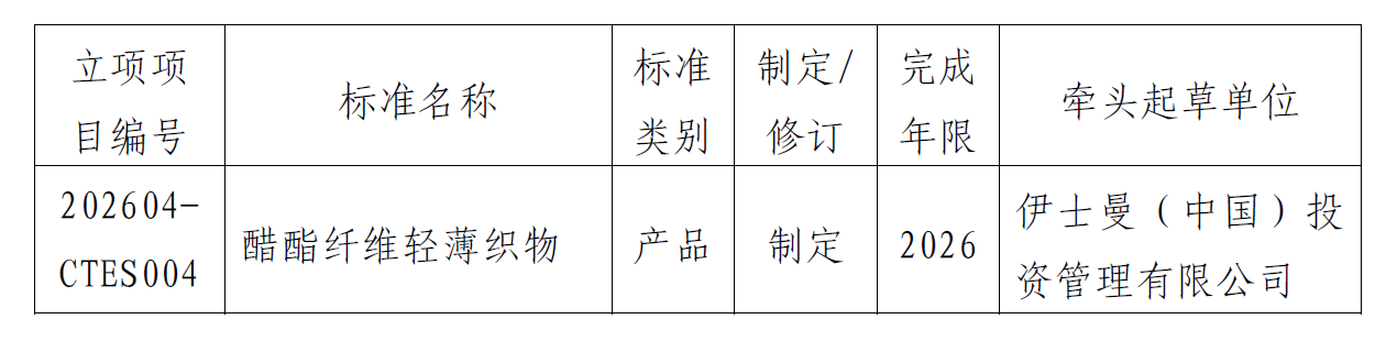 关于《醋酯纤维轻薄织物》团体标准立项的通知
