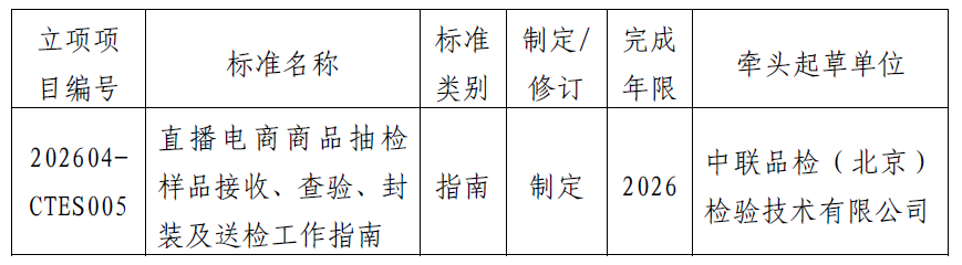我会批准《直播电商商品抽检 样品接收、查验、封装及送检工作指南》团体标准立项,现予以公布。