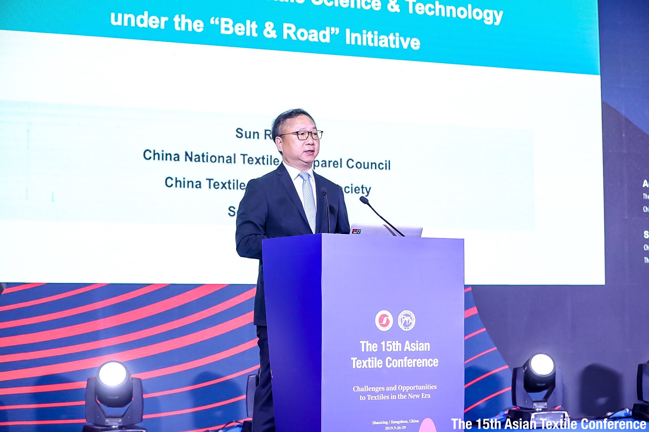 忻浩忠在致辞中简要介绍了亚洲纺织学会联盟(FAPTA)的历史:亚洲纺织会议(ATC)是FAPTA的主要活动之一,每两年召开一次。自1992年至今已在FAPTA成员所在地成功召开了14届,为纺织科技人才提供了优秀的交流平台,在汇集智慧思想、进一步促进多边合作、推动纺织产业在世界范围内发展等方面有着积极的作用。 诸剑明在致辞中表示,柯桥地处长三角,区位优势明显,是风光秀丽的江南水乡、历史悠久的文化名城、充满活力的新兴城市,也是中国最大的纺织产业集中基地,纺织业产能占全国的十分之一以上。柯桥还有全球规模最大、产品最集中的纺织品集散中心中国轻纺城,全球近四分之一的纺织产品在此交易,销售网络遍布世界近200个国家和地区。近年来,柯桥围绕“打造世界级纺织产业集群先行区”这一目标,深入实施纺织产业转型升级,大力发展纺织时尚创意产业。依托“一带一路”开展“丝路柯桥·布满全球”行动,柯桥纺织的国际影响力和行业话语权不断提升,逐渐成为一座具有独特产业优势的国际纺织之都。欢迎全球纺织行业的专家学者、业界精英及企业家们,通过本届亚洲纺织会议,能与柯桥纺织企业开展更多的产学研合作,进一步加强技术交流与项目对接,为世界纺织产业发展作出更大贡献。 孙瑞哲发表了题为“‘一带一路’背景下,纺织科技国际合作的机遇和挑战”的主题演讲。他表示面对外界的不确定环境,纺织工业正面临前所未有的压力,亚洲纺织工业在世界传统市场上占据绝对的优势,亚洲国家的纱线产量占全球纱线产量的82%。他指出,“一带一路”沿线国家已是中国纺织品、服装贸易的重要伙伴,也是中国纺织服装工业对外投资的重点地区,中国纺织服装企业期望与更多国家开展实务合作。“一带一路”已从中国倡议上升为国际共识。现在已经有超过136个国家参加了“一带一路”倡议,30个国际组织支持这一倡议,我国也和超过194个国家签署了合作协议,这不仅仅是产能方面的合作,也期望吸引世界优秀科技人才共同在高新技术方面开展双边或多边的合作。 他强调,中国纺织科技在“一带一路”发展中要有新的作为。首先,要建立智库。“一带一路”沿线国家中有很多高校、科研机构,希望中国的大学可以与“一带一路”沿线国家的大学多进行学术交流与合作。其次,要建设科研科技园区。再次,要促进纺织服装行业科技人文交流,比如,中国纺织工程学会设立了国际化的“纺织学术创新奖”,表彰在世界范围内纺织科学研究及应用中取得突出创新成果的科技工作者。人才是科技发展的动力源泉,希望通过凝聚更多的全球优秀人才为纺织产业的发展做出贡献。