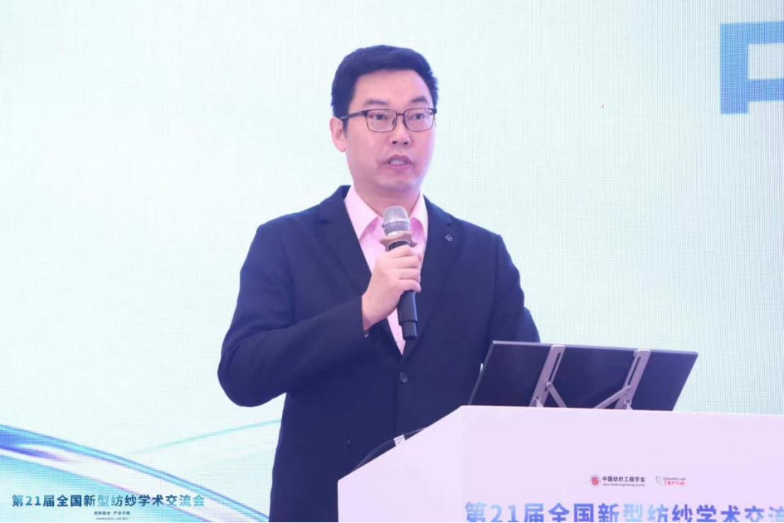 11月27日上午的主旨报告环节,行业顶尖专家带来了一场高水准的学术盛宴。东华大学教授、中国纺织工程学会新型纺纱专业委员会主任汪军,以深厚的行业积淀与前瞻视野,系统解读新型纺纱技术的核心内涵、最新进展与未来发展趋势,为行业高质量发展指明方向;光山白鲨针布有限公司棉纺总工程师陈玉峰,聚焦新型纺纱高效梳理器材的创新实践,分享了一系列兼具实用性与创新性的技术成果,为企业技术升级提供了可落地的参考方案;吴江京奕绿能新材料科技有限公司厂长孔国庆,针对新型纺纱物流瓶颈问题,提出智能条桶与智慧仓储一体化解决方案,为行业降本增效提供新思路;乌斯特技术(中国)有限公司纺织工程师陈芳,则围绕 AFIS6 在化纤纺纱过程中的质量控制技术展开专业分享,为精准把控纱线品质提供技术支撑。