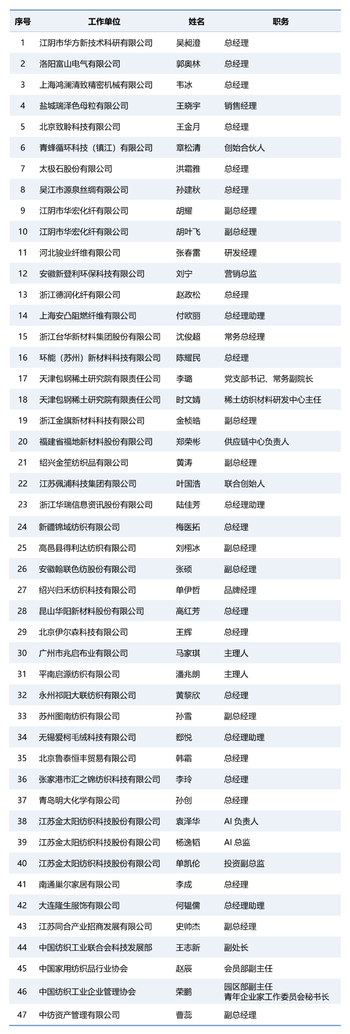 全国纺织复合人才培养工程自2015年启动以来,已成功举办九期,培养了近400名复合型骨干人才,构建了“基础理论+专家讲座+实地探访”的特色培养体系,输送了大量适配行业需求的复合型人才,为推动纺织现代化产业体系建设,注入了源源不断的“人才活水”。期待2026纺织高训班蓄力成长、逐光前行,把所学所悟转化为推动企业创新、引领行业发展的动力,携手推动我国由纺织大国向纺织强国稳步迈进。