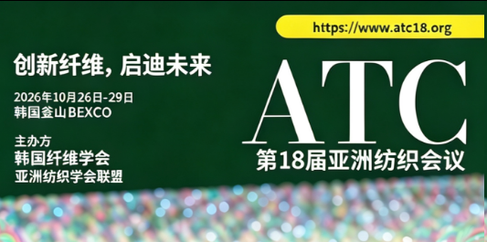 由韩国纤维学会(KFS)与亚洲纺织学会联盟(FAPTA)联合主办的第十八届亚洲纺织会议(The 18th Asian Textile Conference,ATC),将于2026年10月26-29日在韩国釜山BEXCO会展中心隆重召开!
