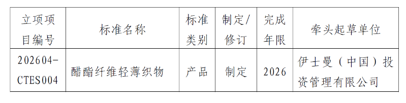 关于《醋酯纤维轻薄织物》团体标准立项的通知