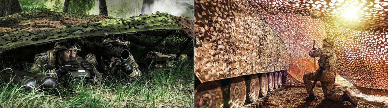 2.按防护侦察波段主要分为:(1)防光学侦察伪装网,可以对抗肉眼和光学仪器;(2)防中远红外侦察伪装网,可以对抗热成像仪;(3)防雷达侦察伪装网,可以对抗雷达波;(4)防多波段侦察伪装网能同时对抗以上多种侦察手段,集光学、中远红外和雷达防护于一体,是当前发展的主要方向。(5)其他特殊用途伪装网。其中,轻型伪装网凭借其减轻重量、缩短伪装作业时间的优势,显著提升了部队的机动性和快速反应能力,因此“轻型化、便携化”同样是伪装网发展的重要趋势。